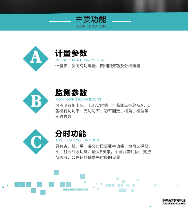 主要功能:有功,功率因素,有功功率,視在功率,電壓,電流,事件報警