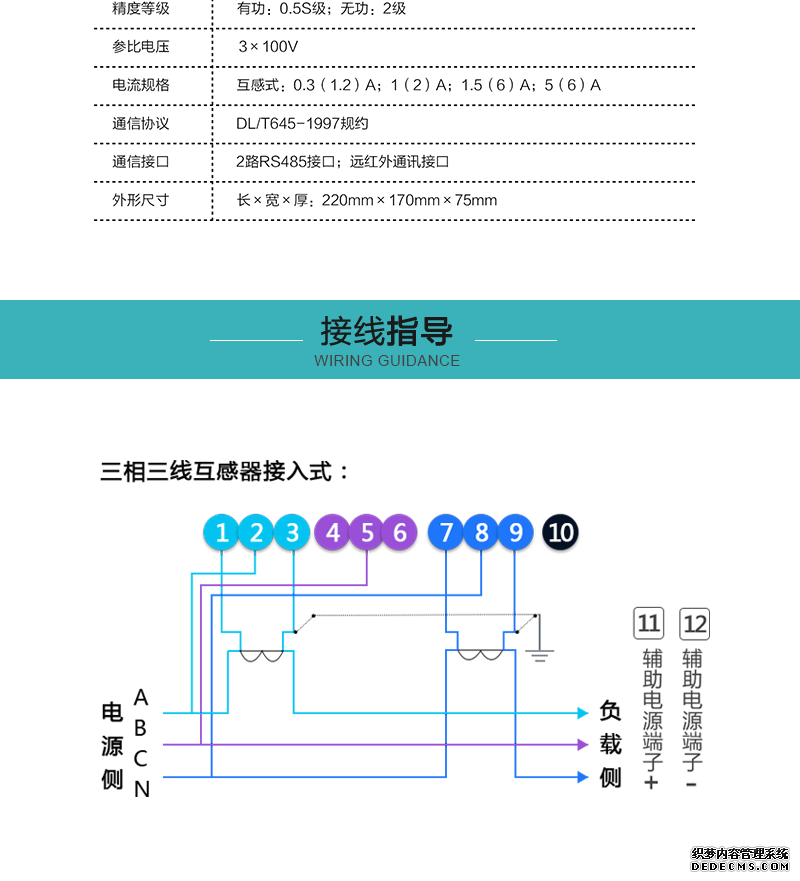 接線制式:三相三線制